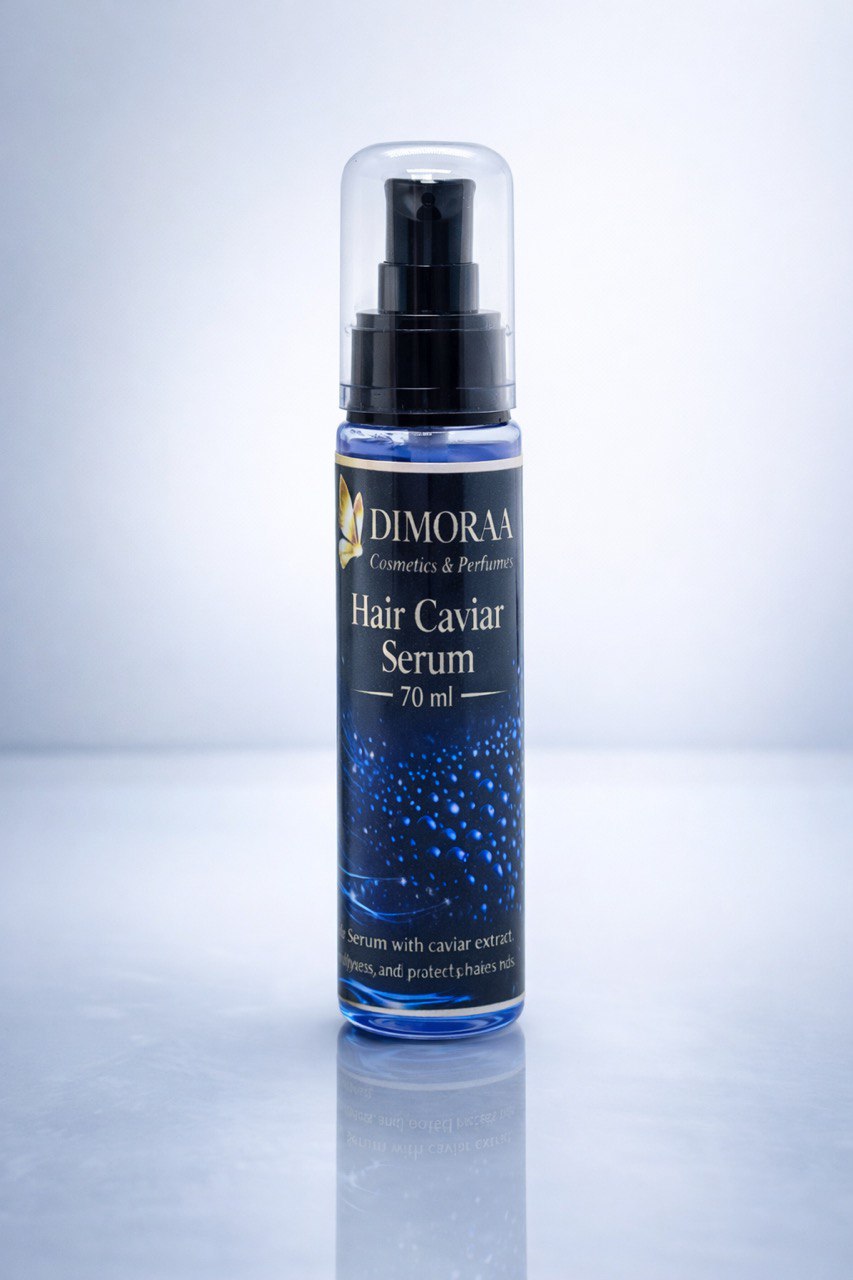 سيروم الكافيار الفاخر بتركيبة غنية من الزيوت المغذية والسيليكونات الخفيفة المصممة لمنح الشعر نعومة فورية، لمعانًا مرآتيًا، وحماية متقدمة من الهيشان والتقصف.